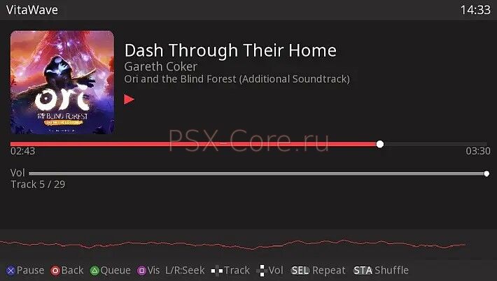 VitaWave v1.0 - хоумбрю музыкальный плеер для PS Vita. Воспроизводит файлы MP3, FLAC и OGG Vorbis из папки ux0:music/.